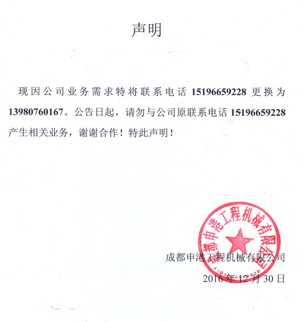 公司關(guān)于聯(lián)系電話更換聲明