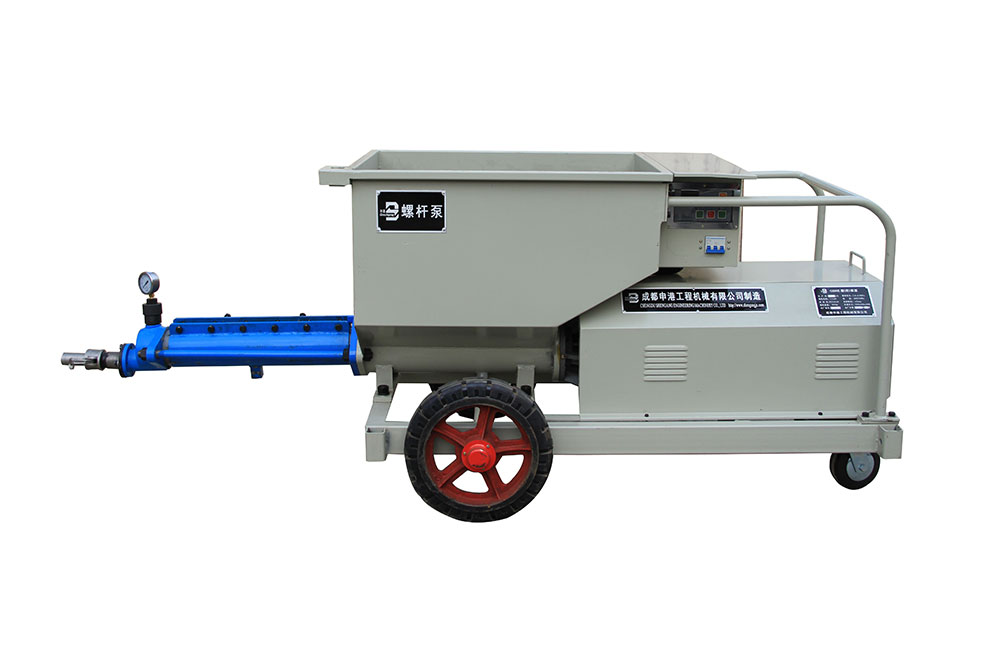 該泵結構新穎、構思獨特;避免了灌注稠漿較困難的不足,使用安全方便、效率高。本機主要由攪拌裝置、操作機構、輸漿體、增壓蝸桿、增壓定子、測壓、料斗、電控系統等組成,當用于噴護時,還包括噴射器,其特點如下:
